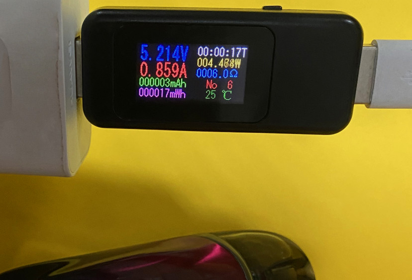 Зарядка: 1А заявлено, 0.86А фактических.